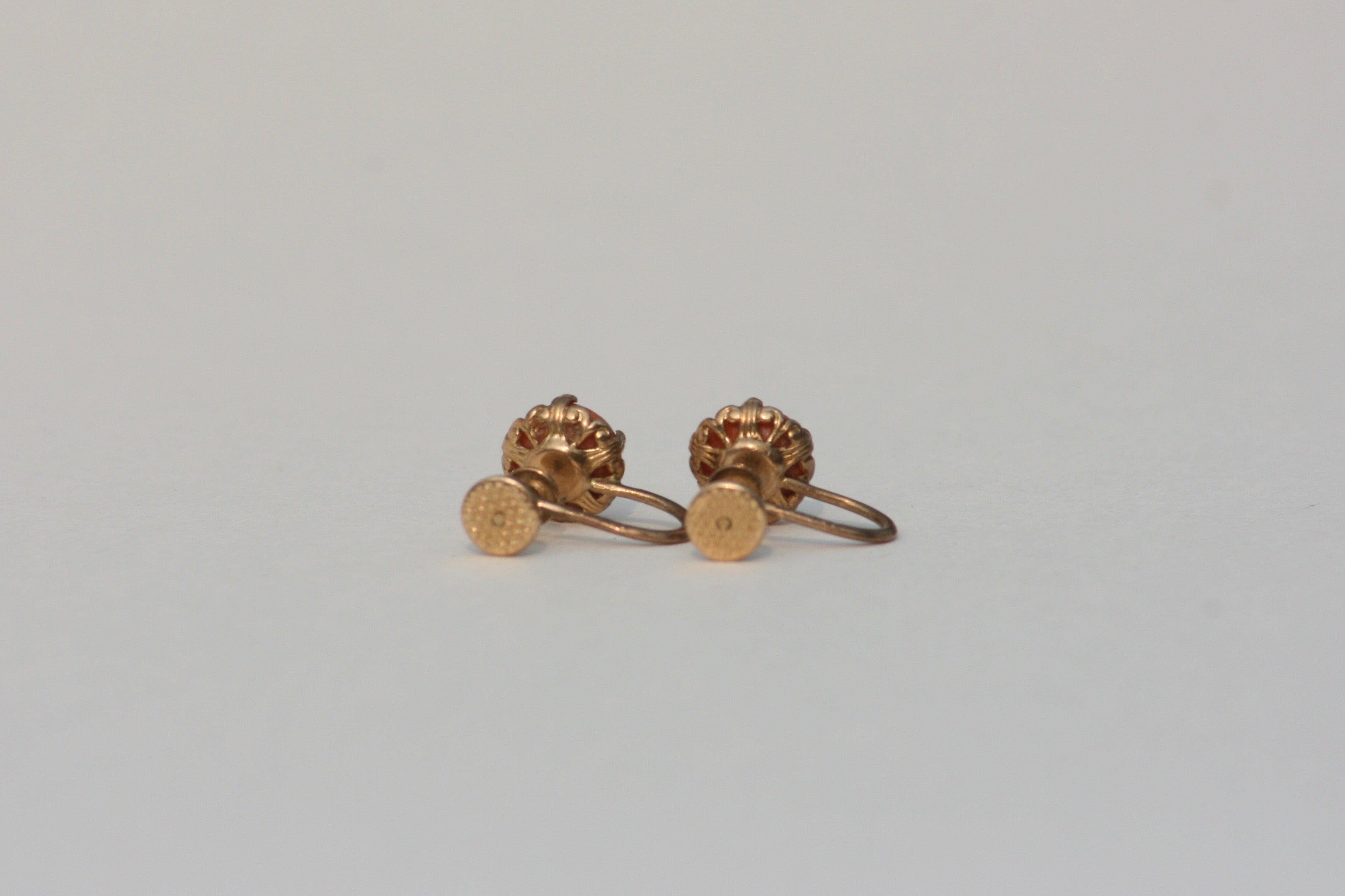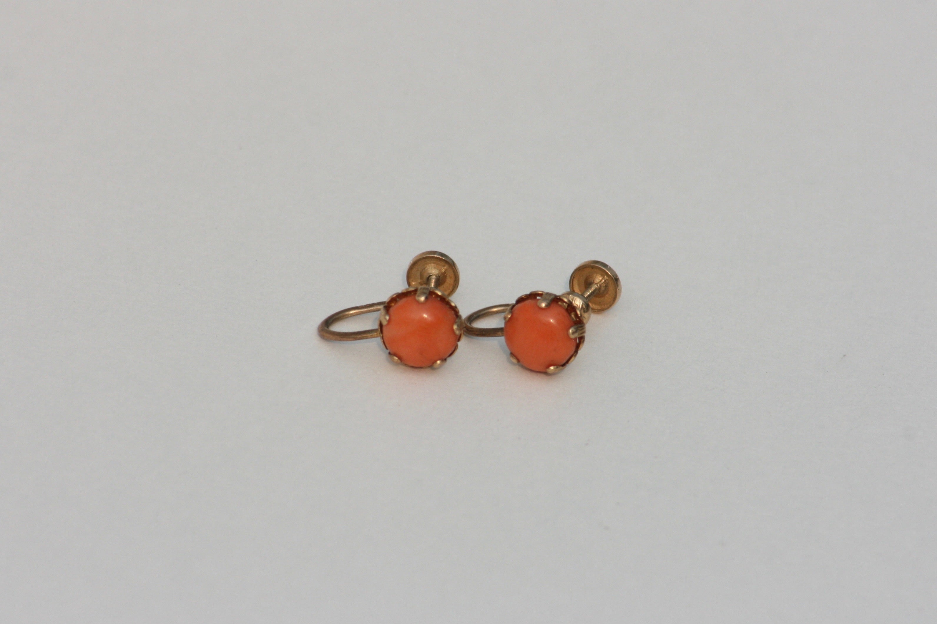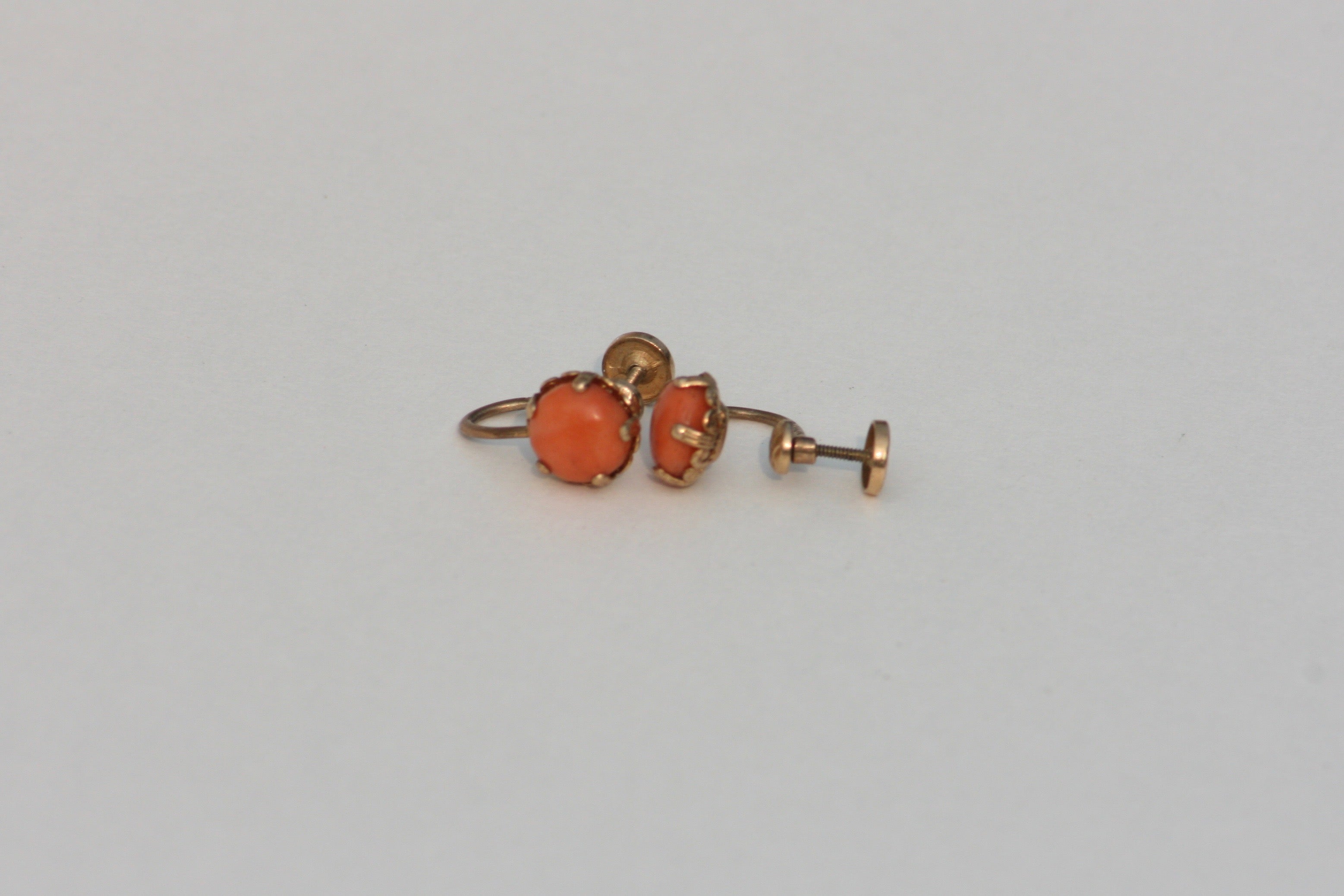 Victorian coral earrings set in 10K gold. These earrings have screw backs and feature decorative claw settings.