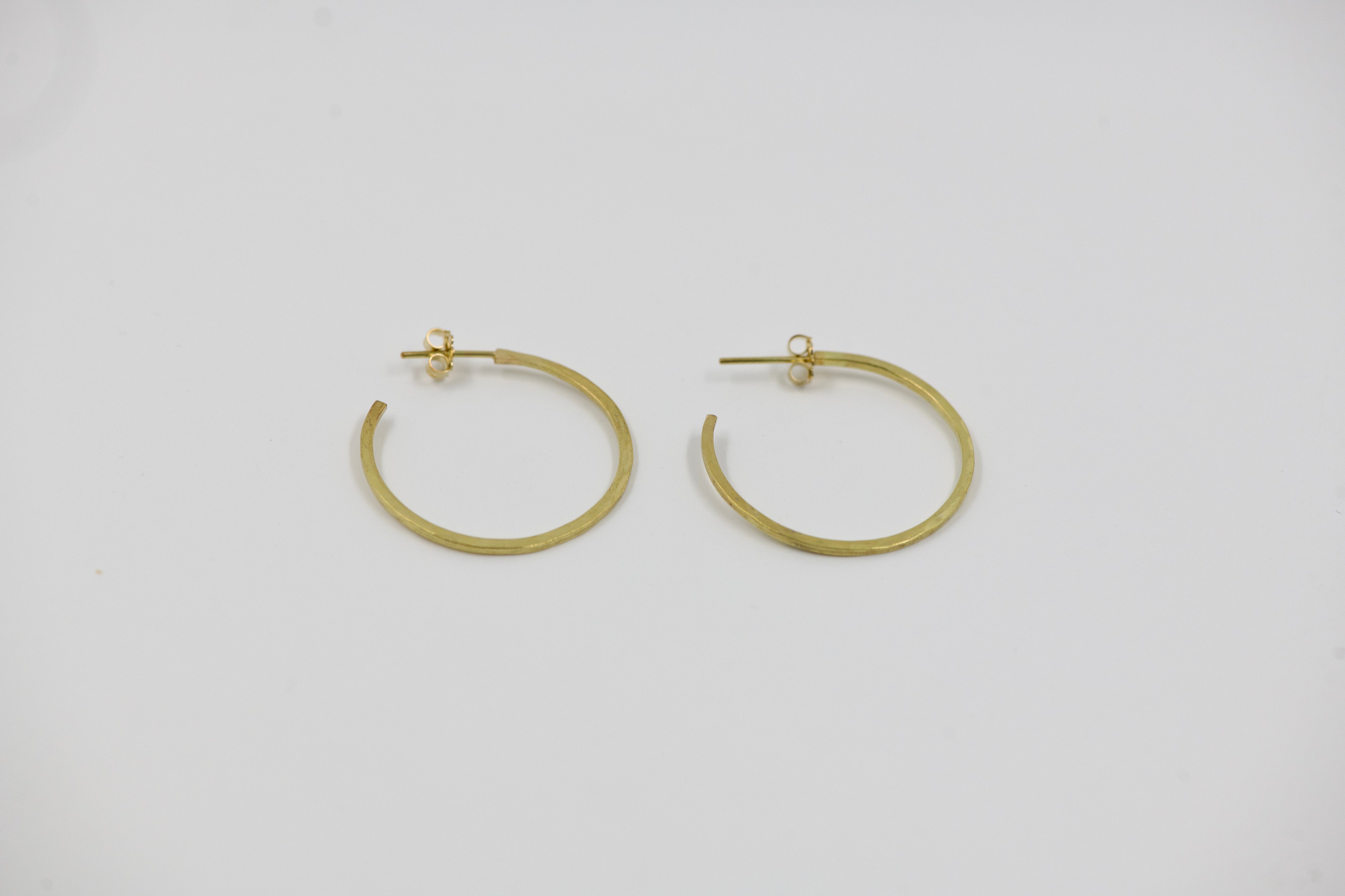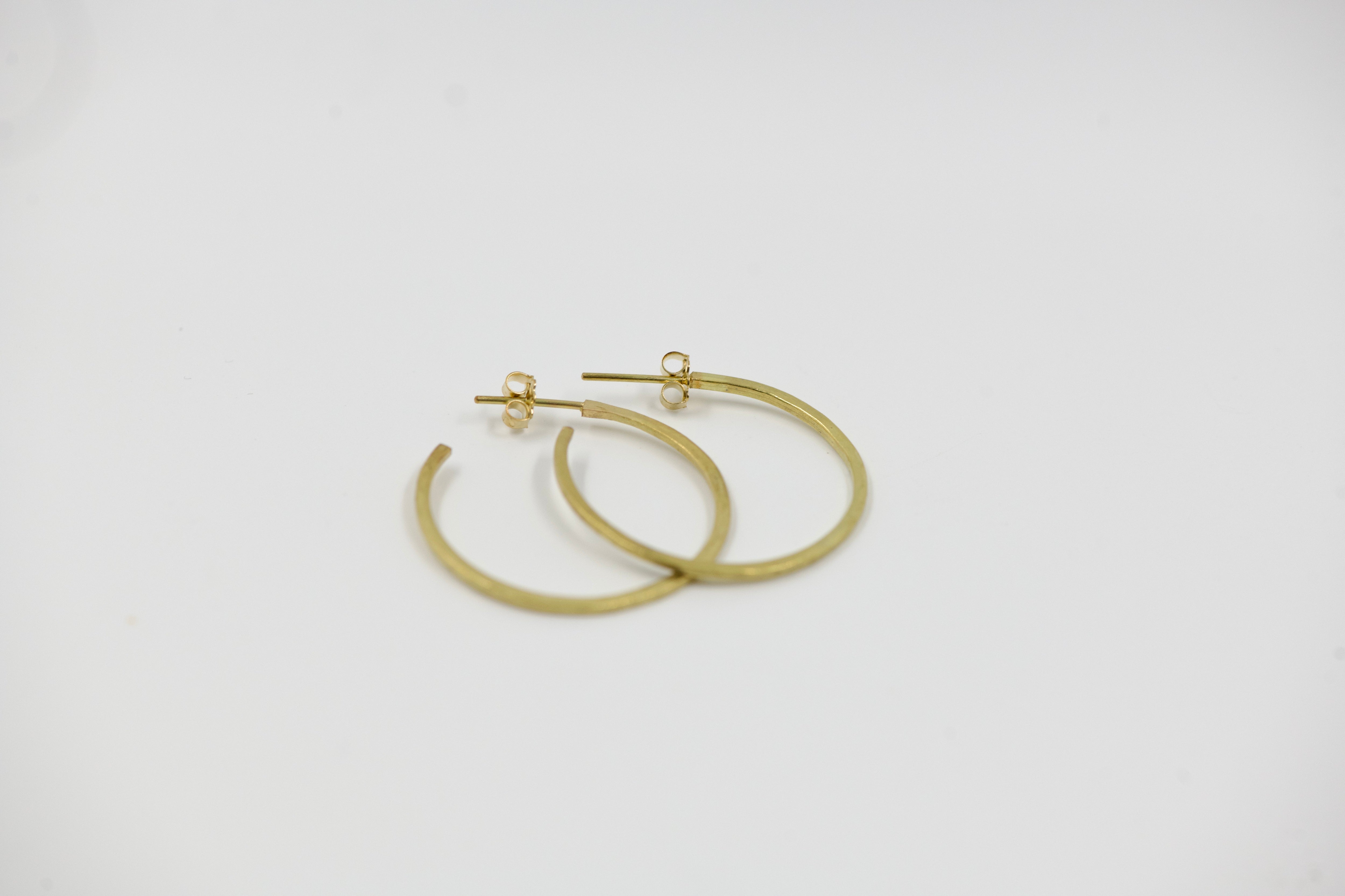 Hand crafted with a hammered texture, these large, slim hoops are perfect for everyday wear.