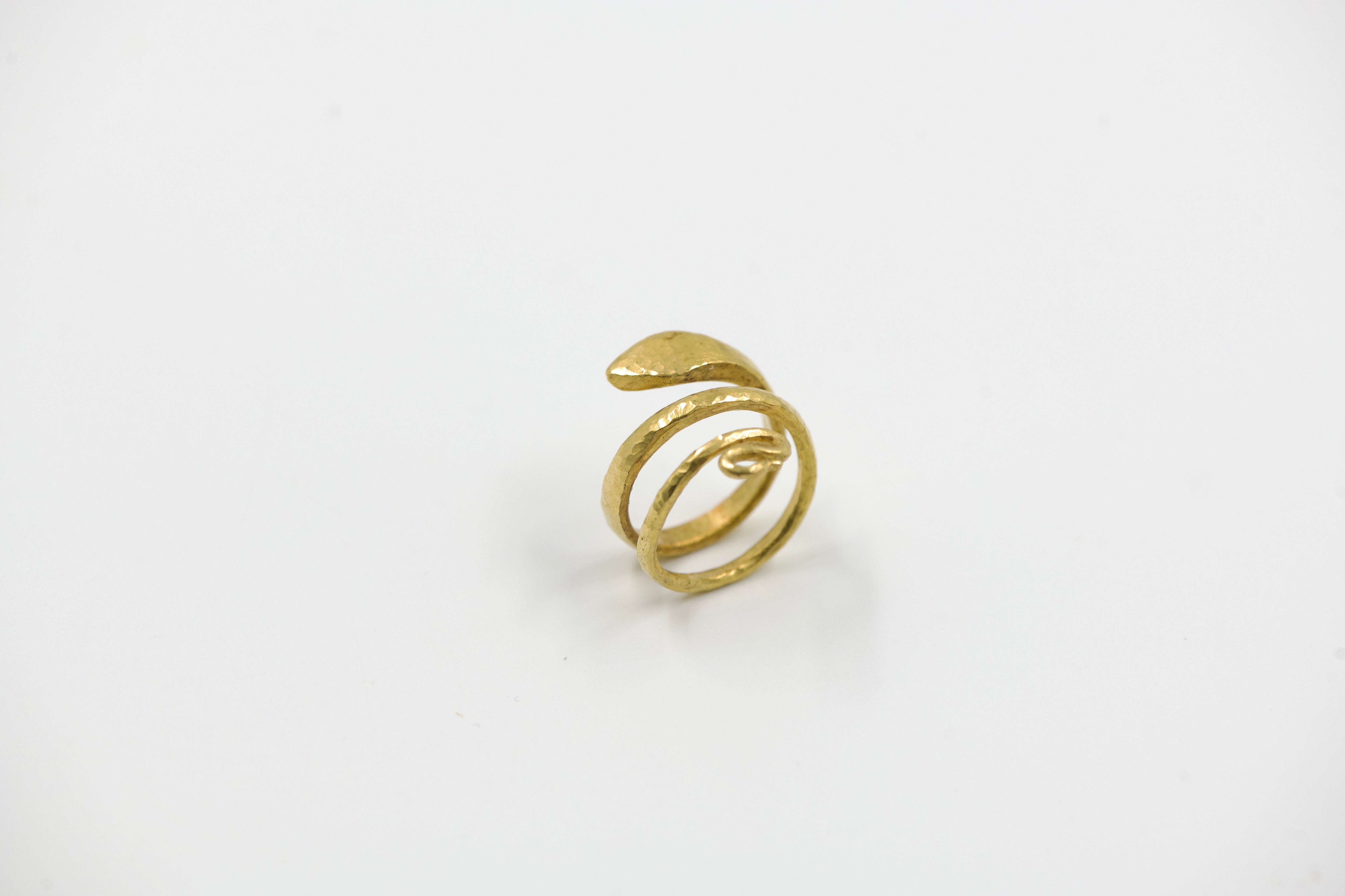 Our first snake ring, handcrafted in 22k gold. This gorgeous ring is made from solid gold and sits snugly on the finger.