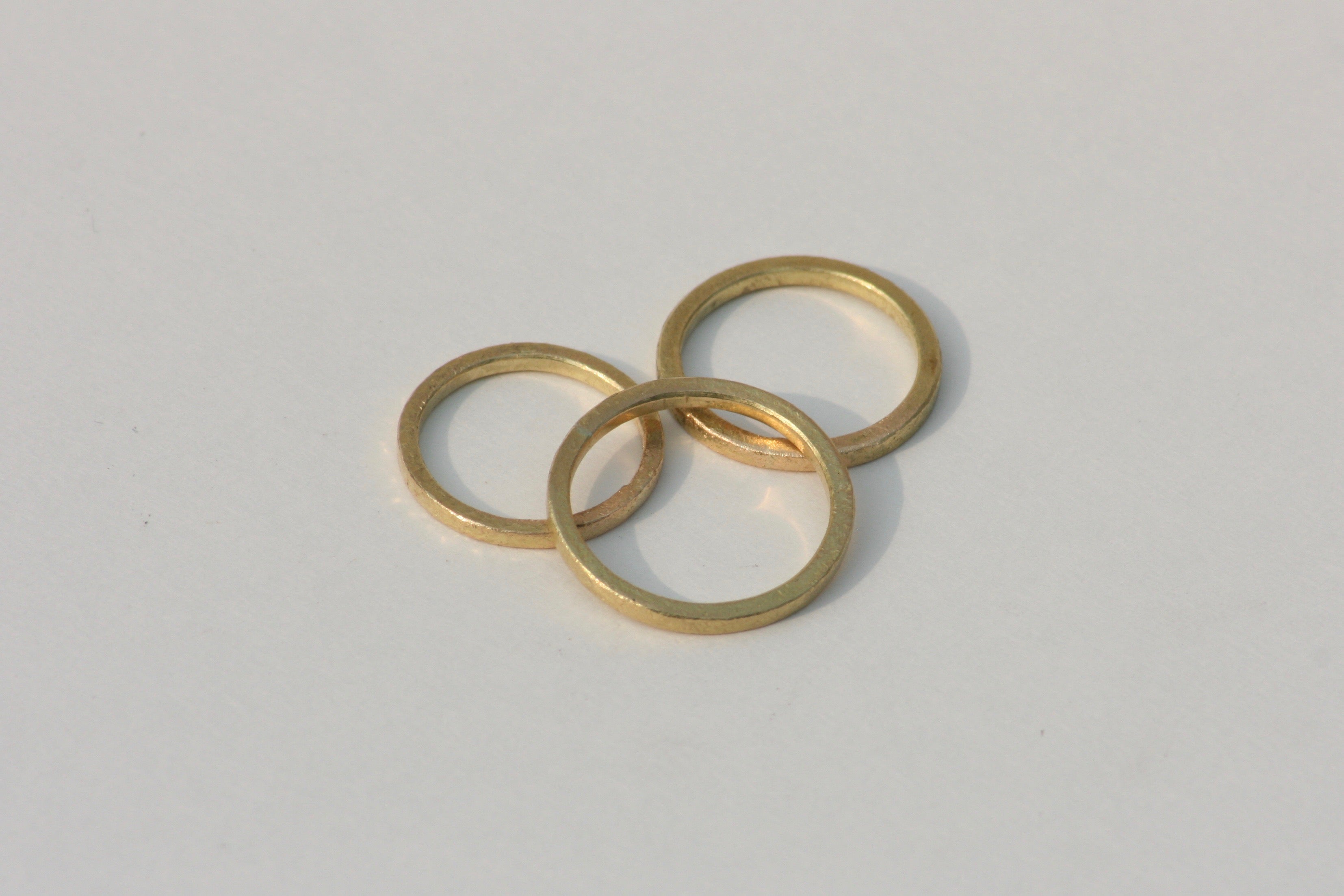 18K solid gold hammered band. Handmade using recycled gold. Wear alone or stacked together.